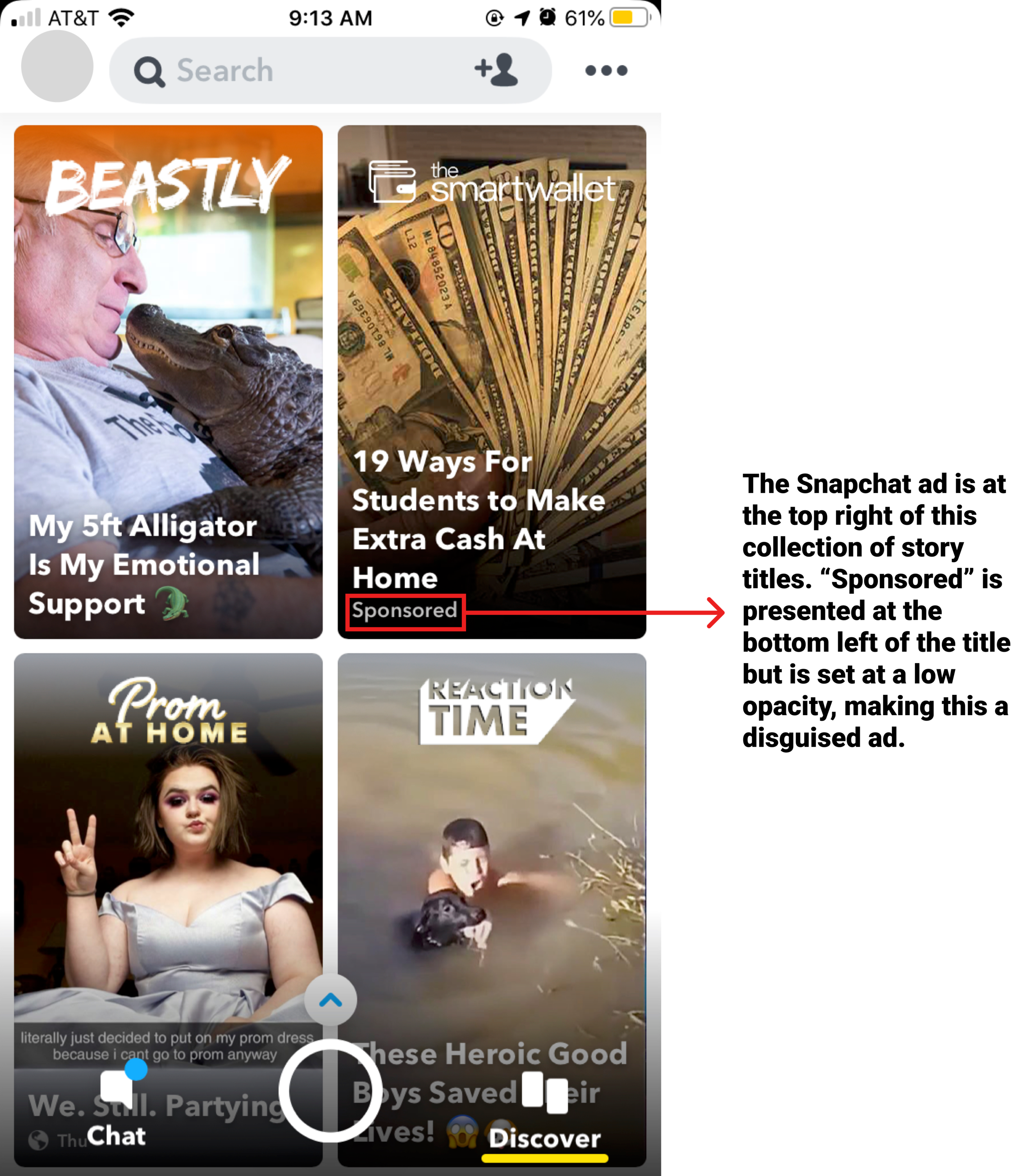 Disguised ads were found on social media platforms. Disguised ads make it more likely that users will view and interact with the ad because they might mistake it as regular content.