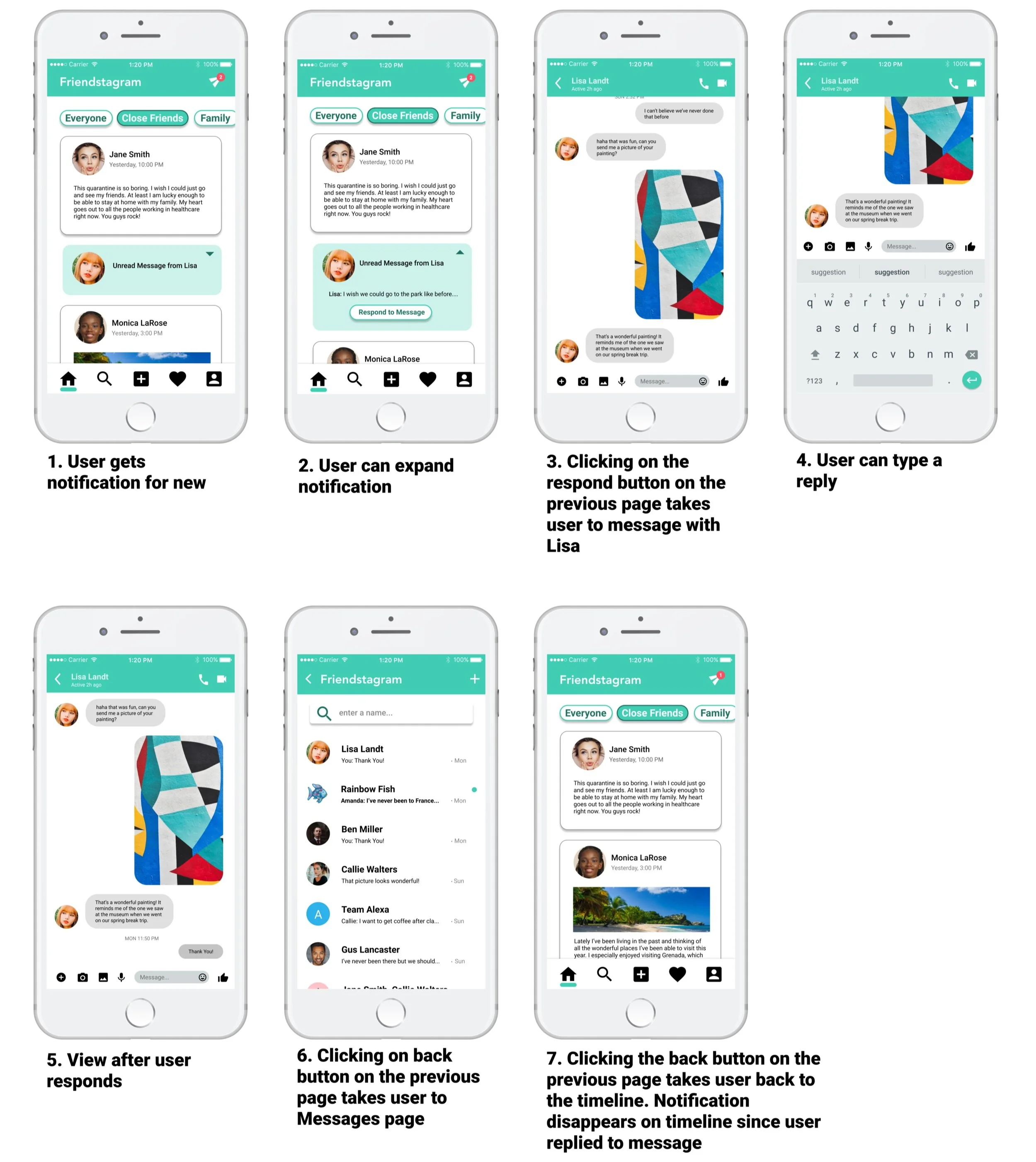 My team developed high-fidelity mock-ups for design patterns that encourage users to use social media actively by connecting more with people important to them.
