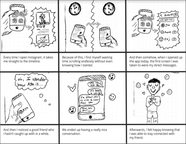 This project was sponsored by KLOA, a start-up that focuses on mobile human-computer interactions. Many users use social media platforms such as Facebook and Instagram in a passive way, mindlessly scrolling through posts. KLOA wanted to understand how to encourage users, specifically Gen Z users (ages 15-25), to be more mindful while using social media.